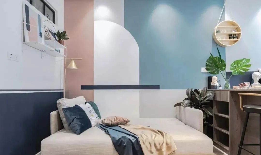喜欢什么颜色一刷就好,乳胶漆非常百搭,且施工简单、干燥速度也比较快,可以选择的颜色多,能通过纯色或者拼接色实现不一样的效果。