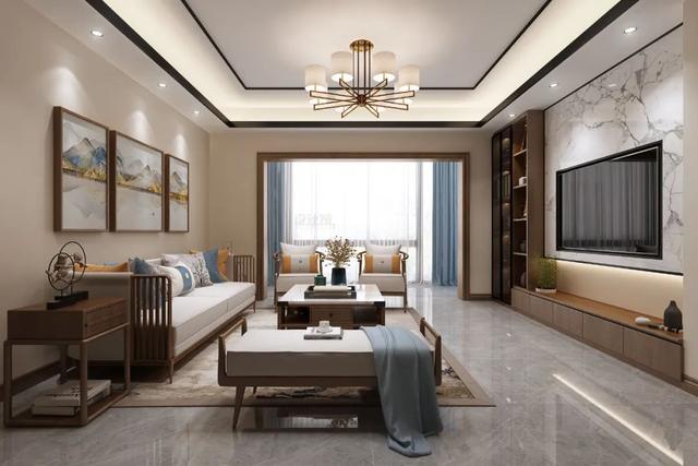 所谓墙面留白,并不是把墙面都刷成白色的。而是新中式风格在墙面装修方面,不会铺满某种材质(比如木饰面、硬包等),而是会留空比较大面积的简洁大气的乳胶漆墙面,整体空间会有一种简约大方的氛围。