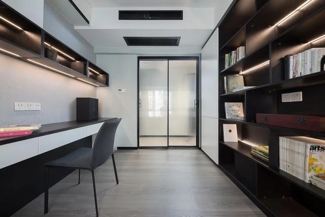 ▲书房的门是长虹玻璃材质的设计,让书房空间采光互通,又让书房有着相对的私密感。
