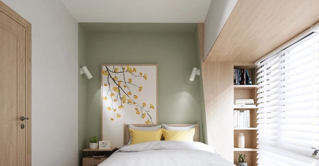 卧室是睡觉的地方,我们在里面需要的是一种轻松舒缓的氛围,而深色会给人造成压抑的感觉,因此在整个空间的墙面、地面,还有床单床品等,都建议用浅色的搭配为主,避免过深的色彩、令人压抑。