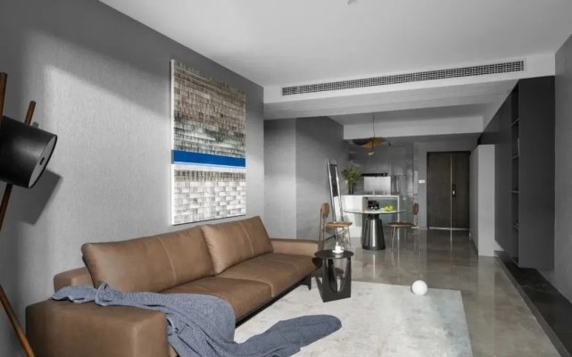 沉凝的灰色构成了空间的主基调,于低调中晕染出现代感的宜居美学。重墨的蓝中和了灰的单调,让色彩变得丰富而有层次,还原私密空间应有的宜人温度。