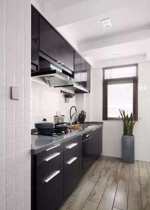 一字形的厨房,常见于以下情况:小面积公寓的过道式厨房、狭长且带有阳台的厨房、面积较小的厨房,一字形的厨房实用性都较低,通常都是无奈的选择,要么是小,操作台面空间不足,要么是动线较长,做饭需要来回走动多。
