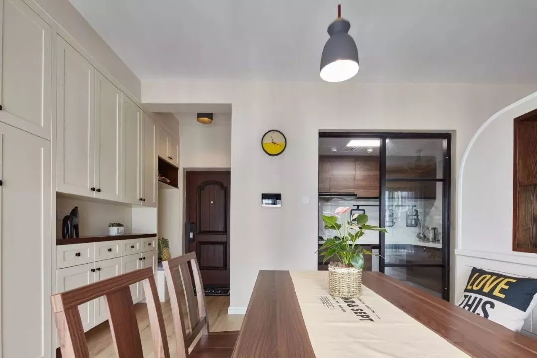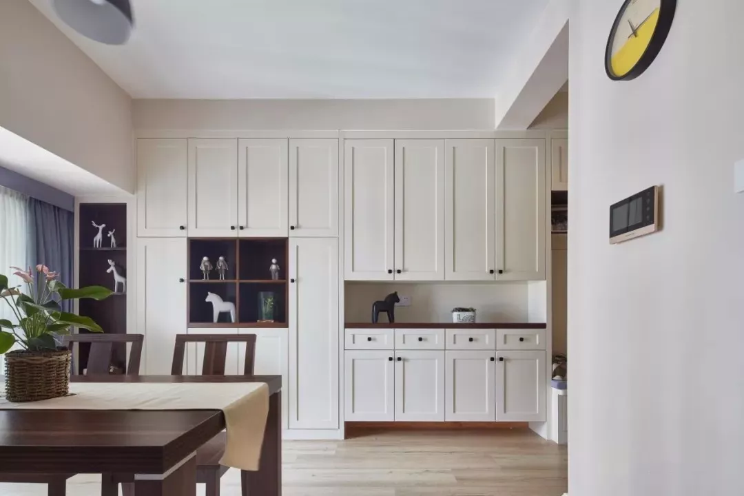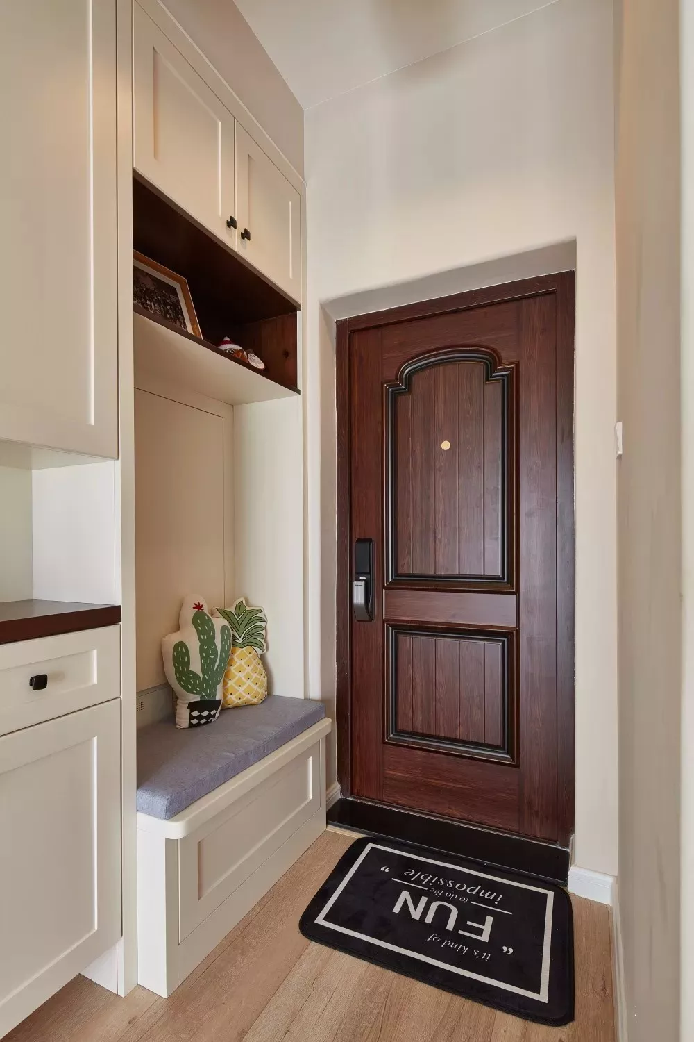 ▲玄关安装嵌入式系统柜,集换鞋凳、鞋柜、储物等多种功能于一体。