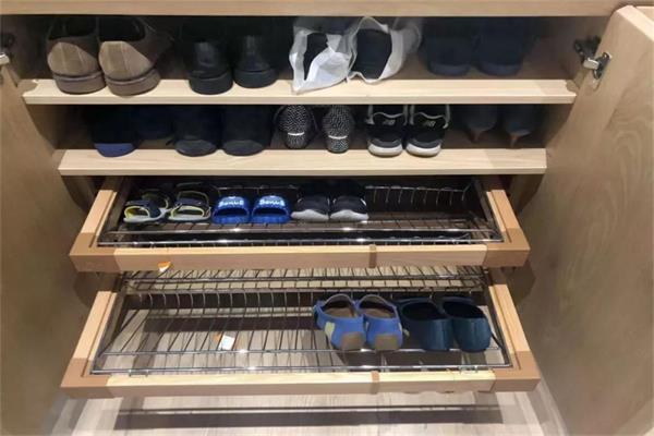 原木色的鞋柜和地板的颜色融为一体,我们来看下鞋柜的内部吧。