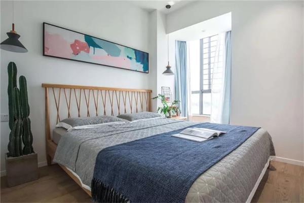 主卧的也比较宽敞,颜色上面比较素雅,也有助于睡眠的质量,简简单单的装饰却看着十分舒服。