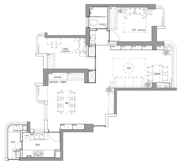 户型其实看起来还满不规则的,但是每个区域的功能都规划的还不错,有两个阳台,客厅一个,厨房里一个,厨房里的作为生活阳台,客厅的阳台就可以利用起来了,这个还是比较理想的,我们就一起来看下实景图吧。