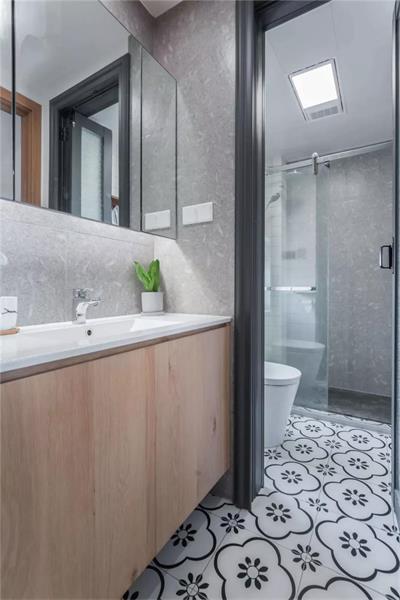 卫生间最抢眼的应该就是地上的这些带有图案瓷砖了,感觉很漂亮有没有?