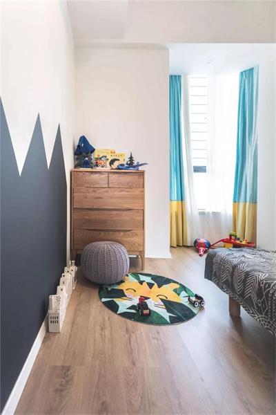 儿童房颜色会跳跃一些,本来房间比较小,但是也可以流出一部分空间让儿子在这里玩耍。