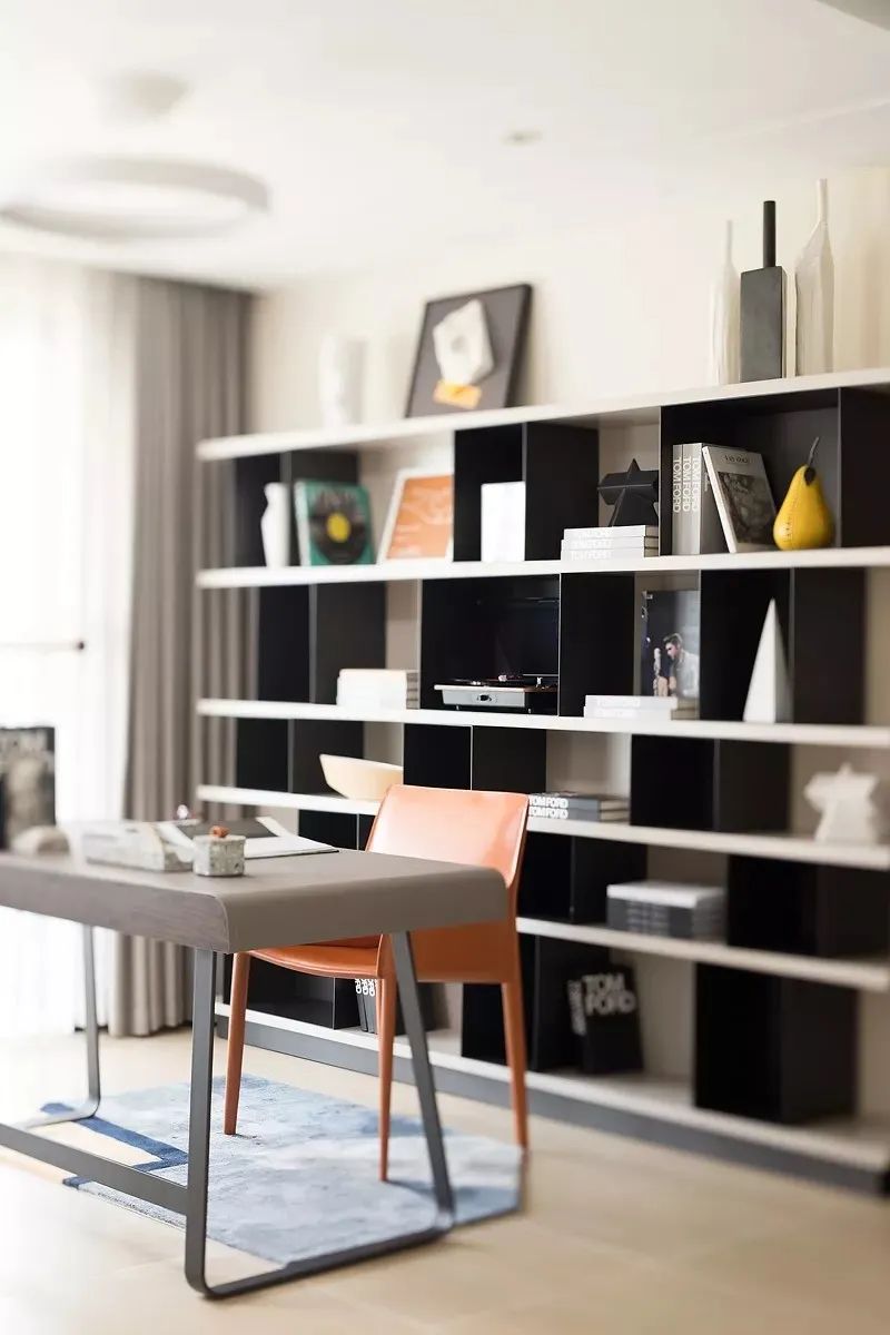 ▲现代简约的书房布置,在家工作或阅读看书都显得格外的情趣。