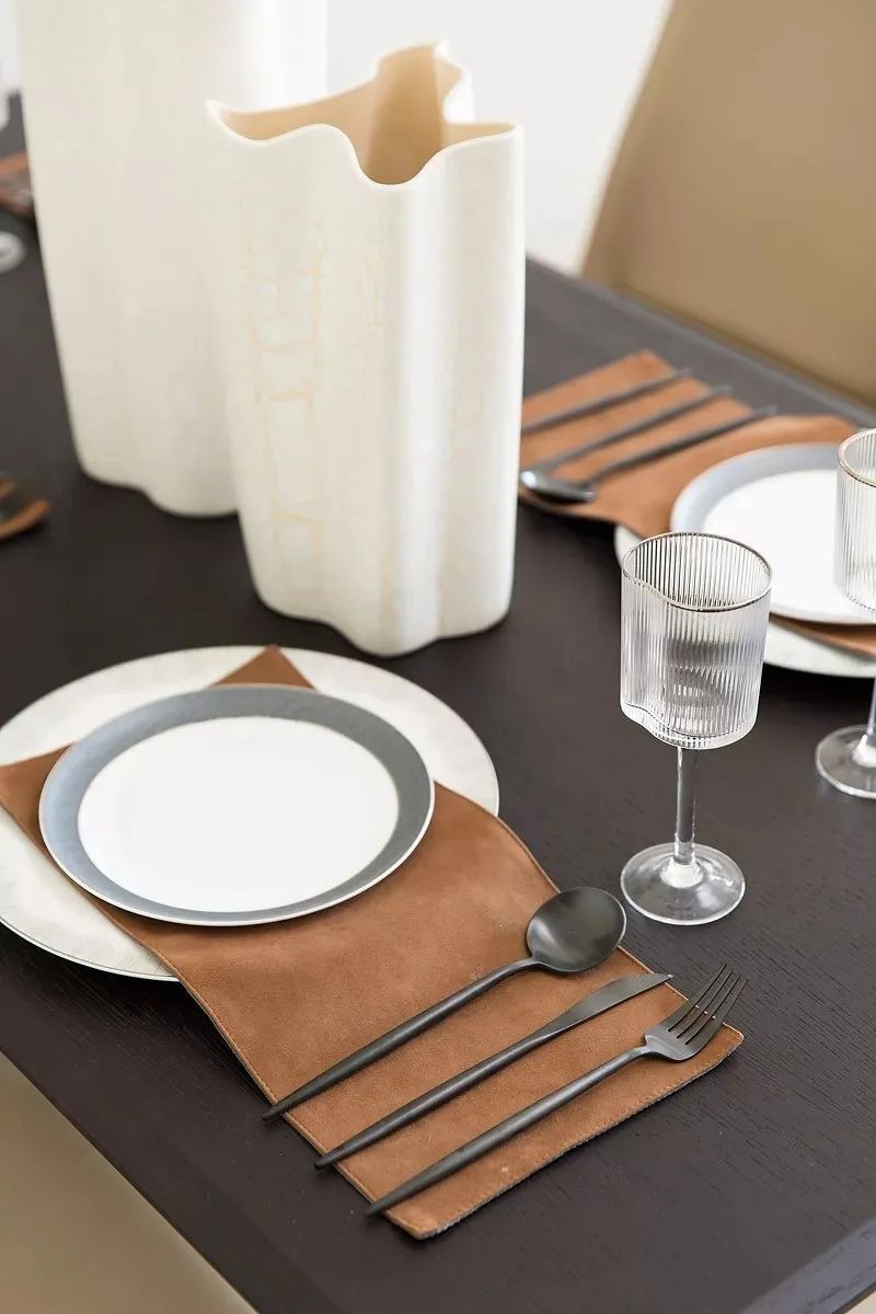 ▲餐桌上布置上精致的餐具酒杯,让用餐氛围更加舒适自然。
