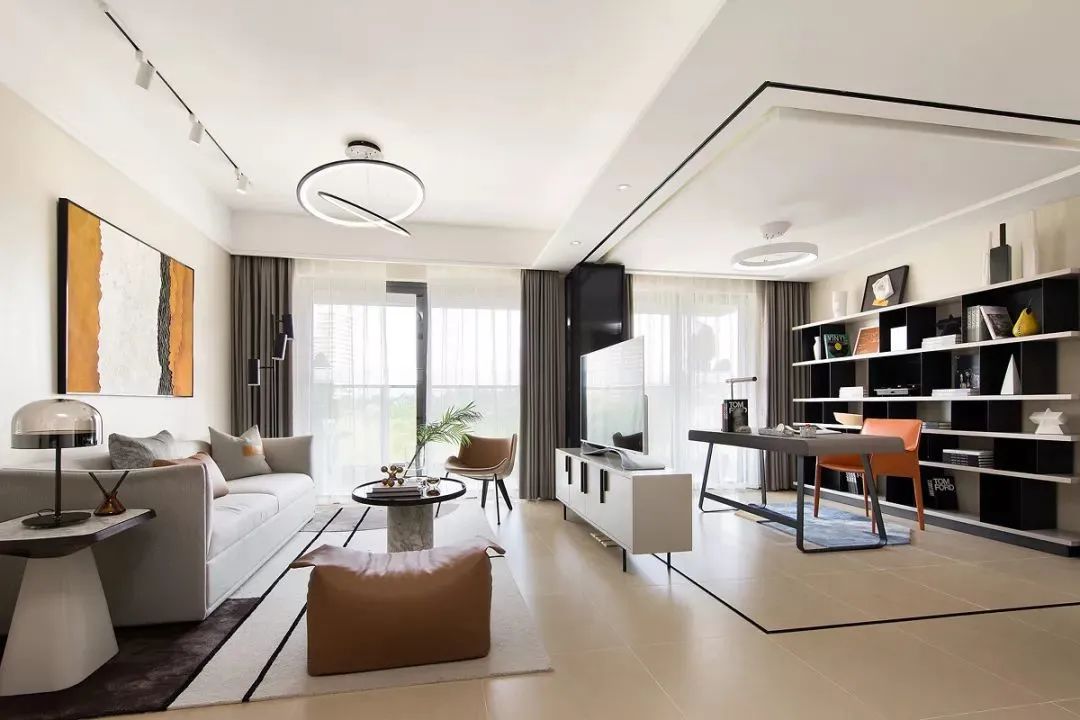 ▲书房与客厅之间是开放式的设计格局,宽敞的视觉令人感觉舒心而又轻松,在家工作也有个舒服的位置。同时预留了安装推拉门的导轨,方便后期加玻璃或隔断。