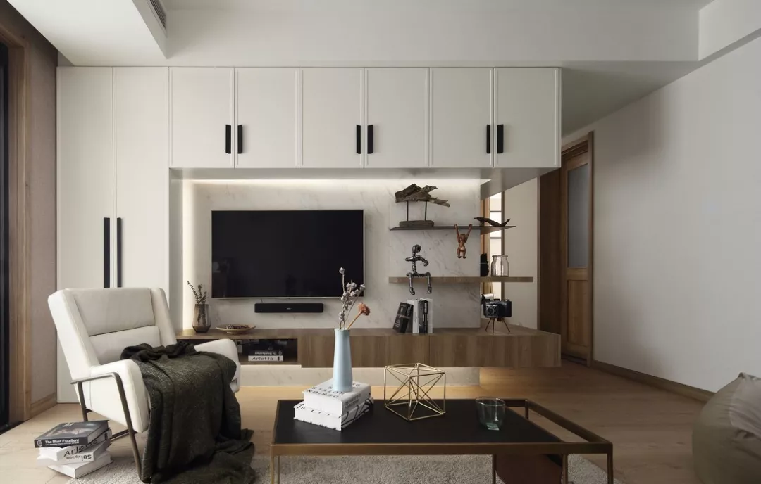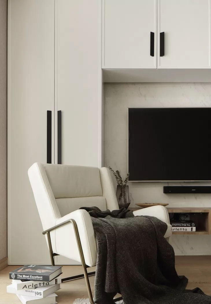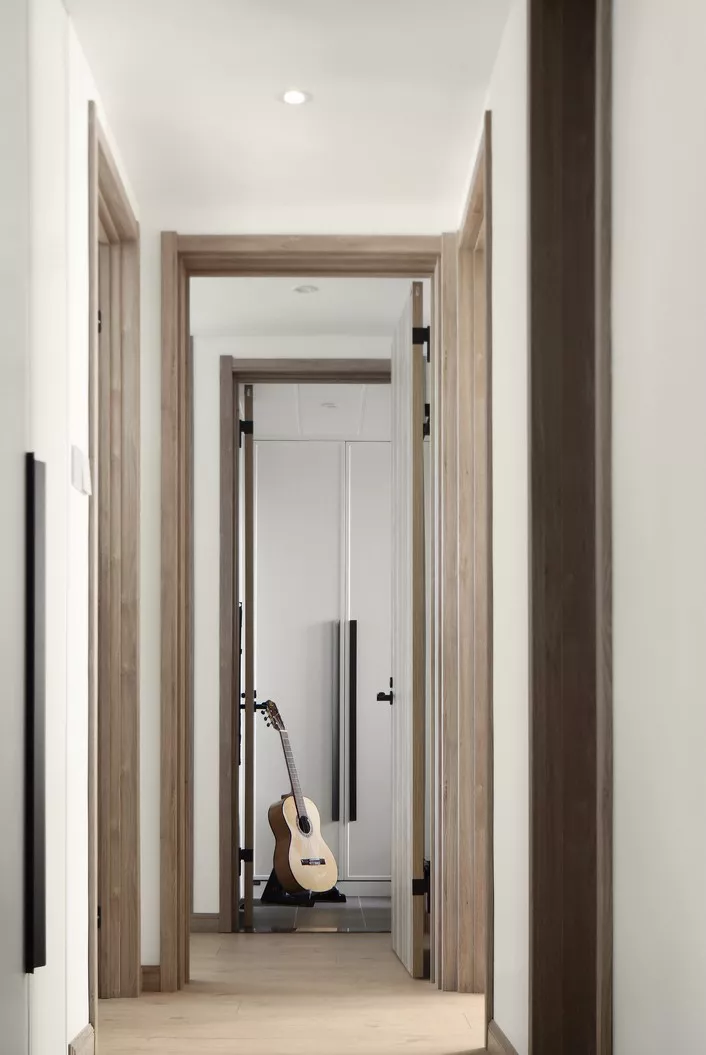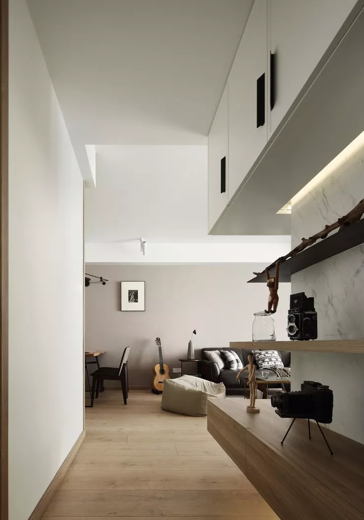 ▲ 空间的整体更加偏向于温润感,白色的柔和,木色的温润,都在同一个空间配合的恰到好处。
