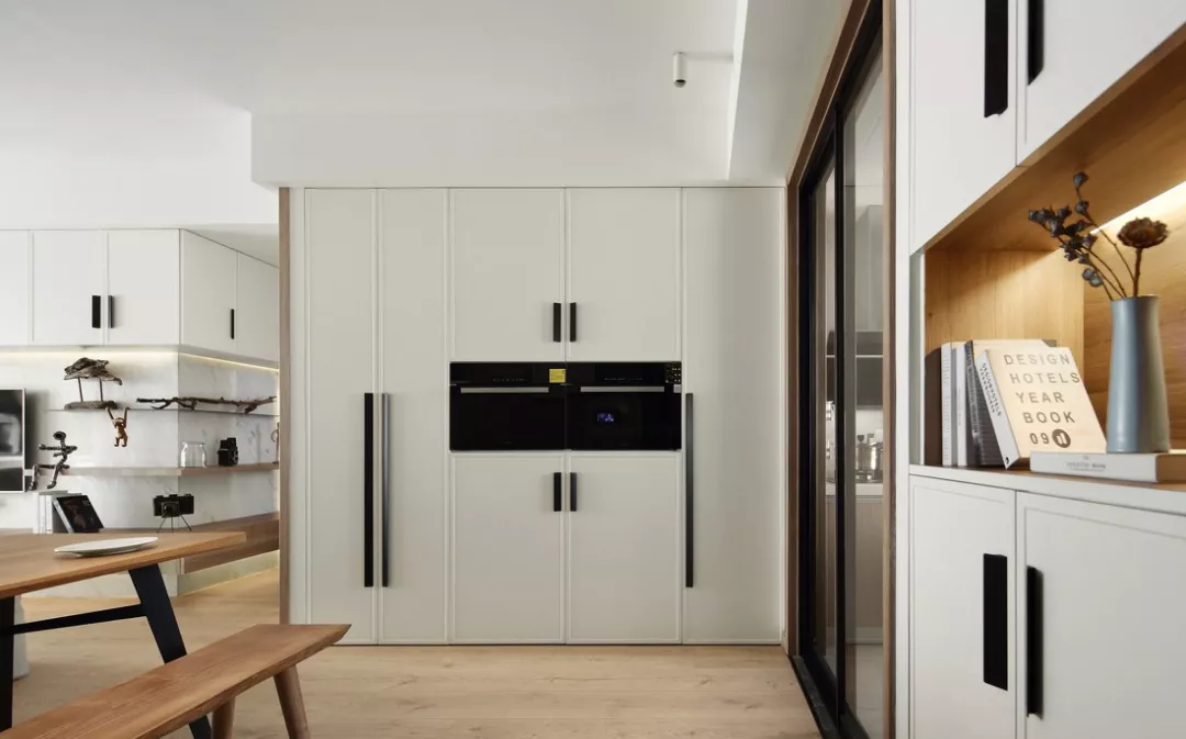 ▲ 定制型的橱柜,嵌入大型的电器,节约空间。