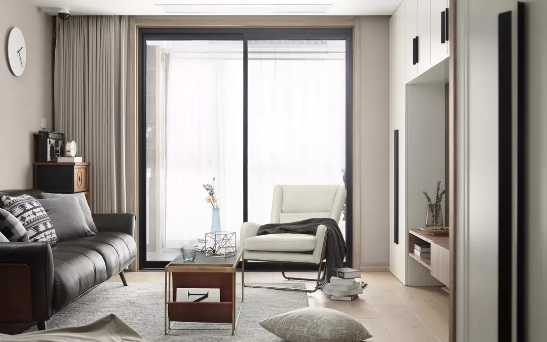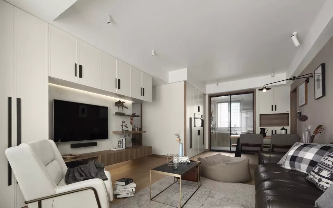 ▲ 阳台与客厅相连,客餐厅也采用开放式,扩大了空间的视觉效果,隐藏了因为增加了收纳空间,所造成的空间紧凑。