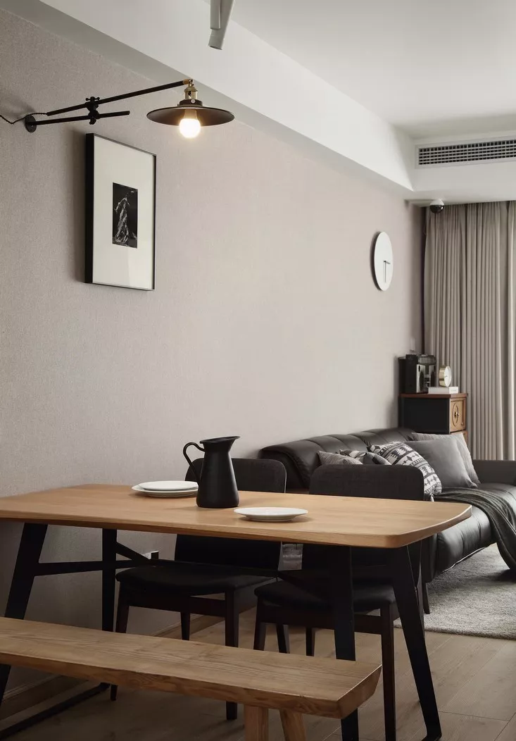 ▲ 以木质餐桌搭配黑色的壁灯,暖色的灯光带来温润感,柔和又优雅。