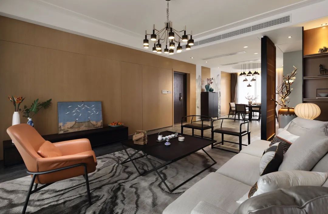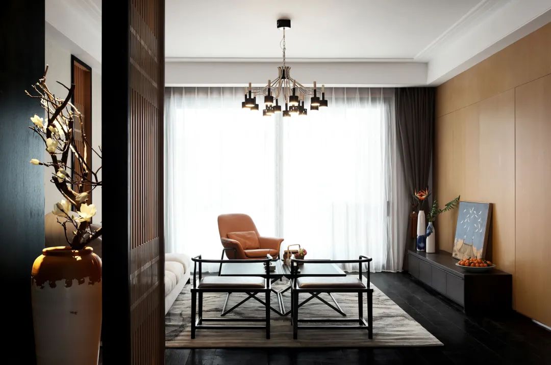 ▲客厅整体空间以现代高级而舒适空间,还有中式儒雅的家具软装,呈现出一种成熟优雅的端庄空间,禅意而精致大气。