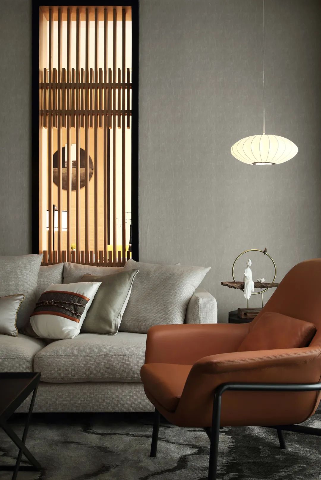 ▲屏风造型,还有中式的单人沙发椅,也增添了这个现代大方空间的儒雅与中式雅韵气质。
