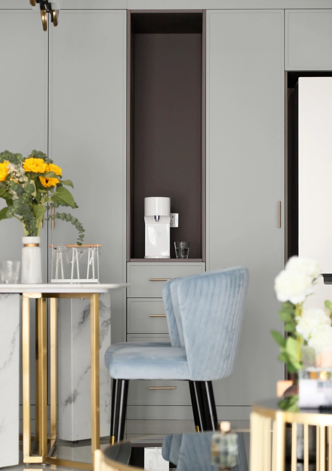 部分开放式的设计刚好可以放置饮水机,美观兼具实用性。