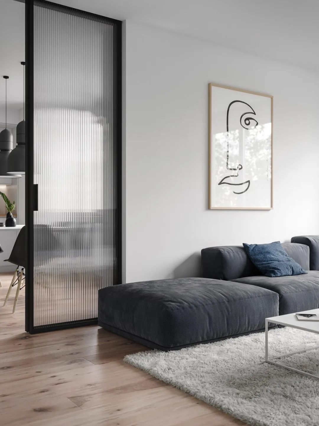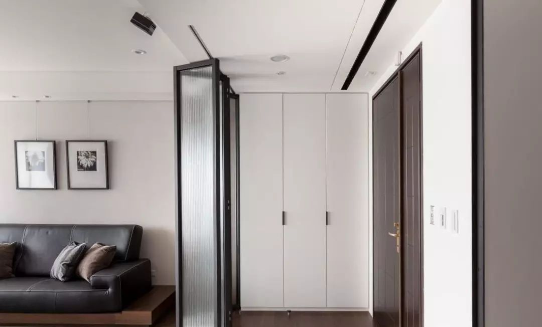 时下流行的隔断形式有很多,黑框玻璃门是非常理想的功能分区的办法。它时尚、精致、“隔而不断”,而且会让整个空间都有明亮通透的感觉。
