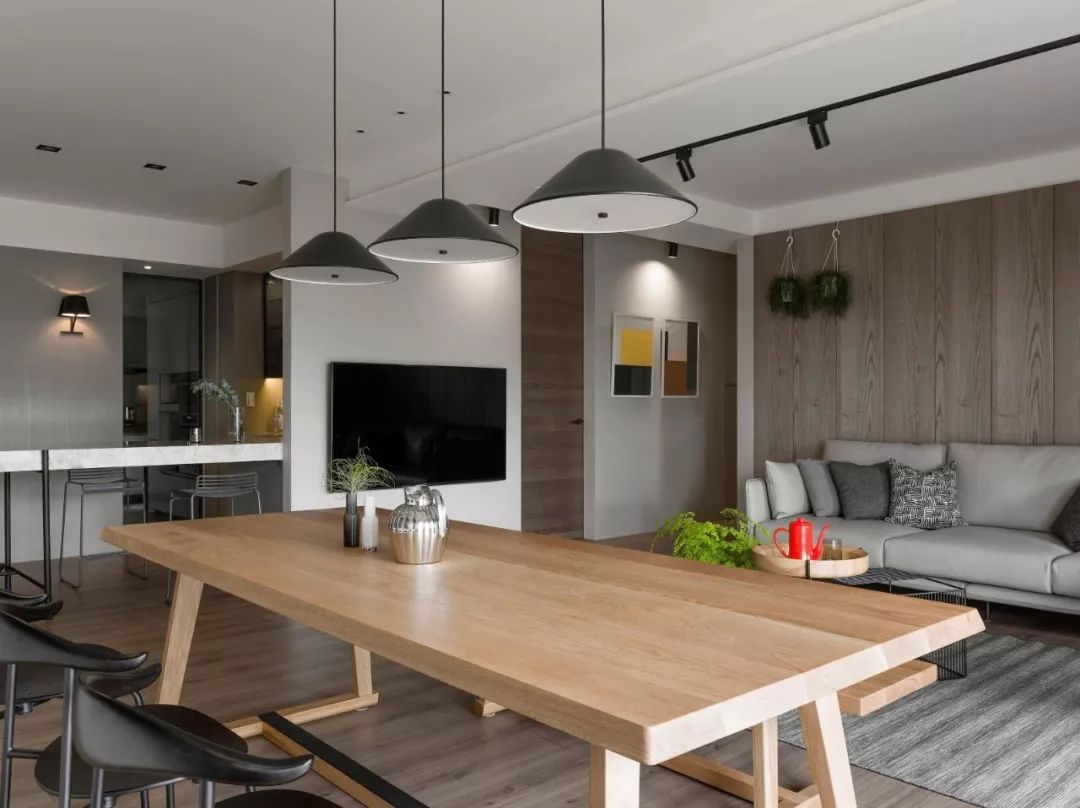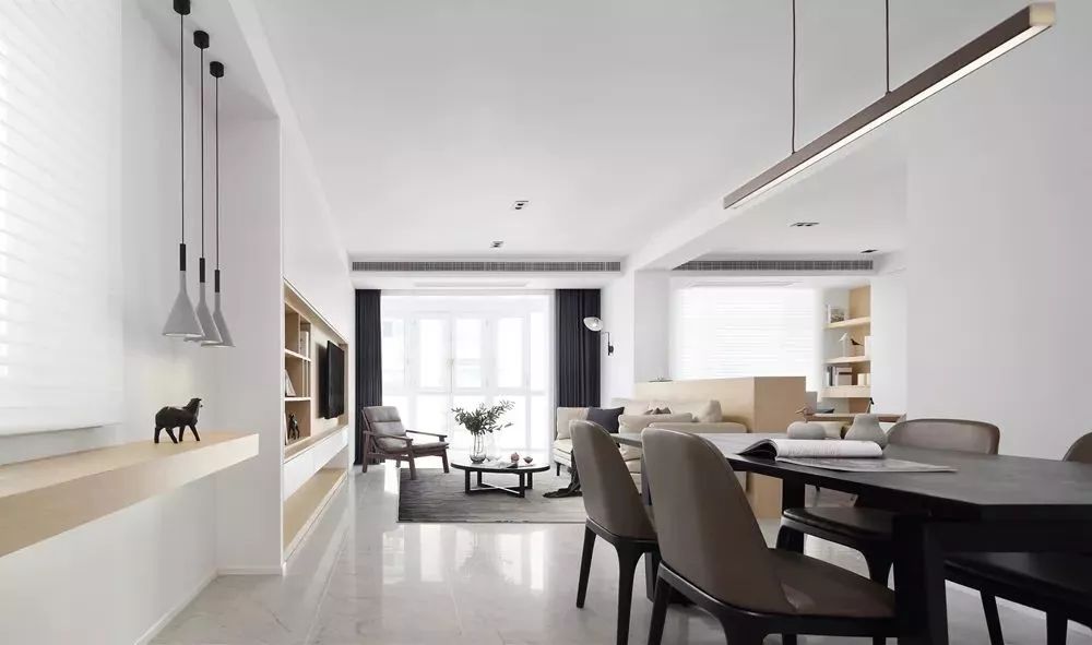 而这些年最 Fashion 的空间布局,莫过于客餐厨一体化了。有些甚至将书房、办公区乃至游乐区纳入其中,最大程度地让视线得到延展,增强家庭交流,乍一看仿佛住在了大别墅里。
