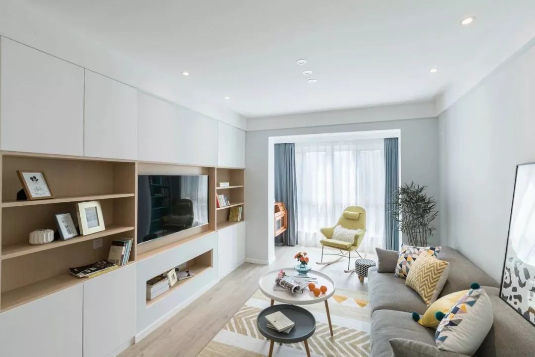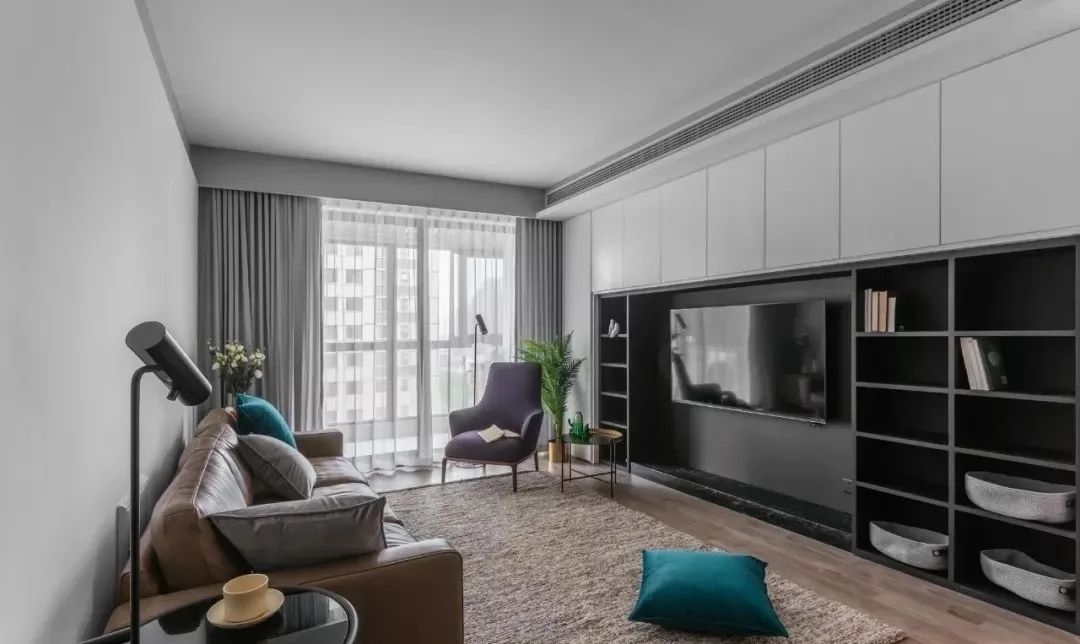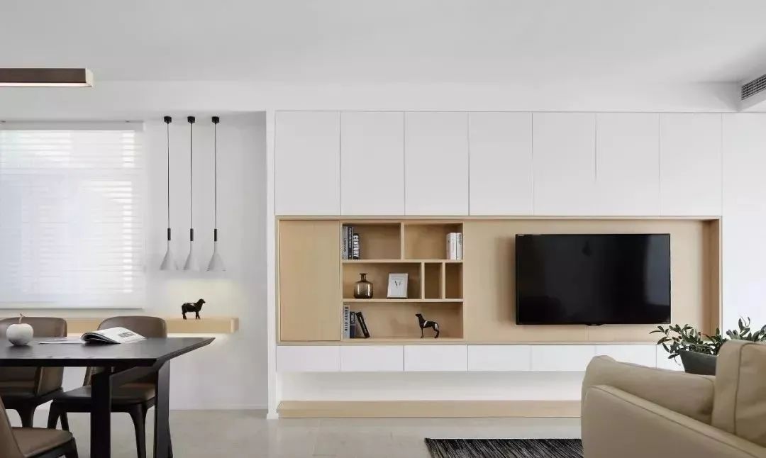 为了避免电视墙的单调感,讲究实用的收纳型电视墙,由于造型简洁、层次感强,又不会占据客厅原本的空间,已然成为了很多时髦家庭和小户型的首选。