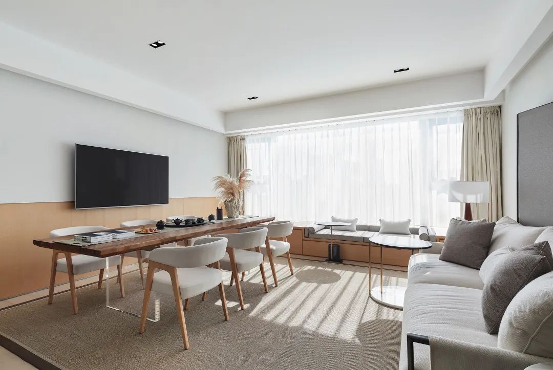 在大面积玻璃窗的加持下,客厅的采光与空气流通变好了,空间感更强了,自然让家的通透感大大提升,带来更好的居住体验。