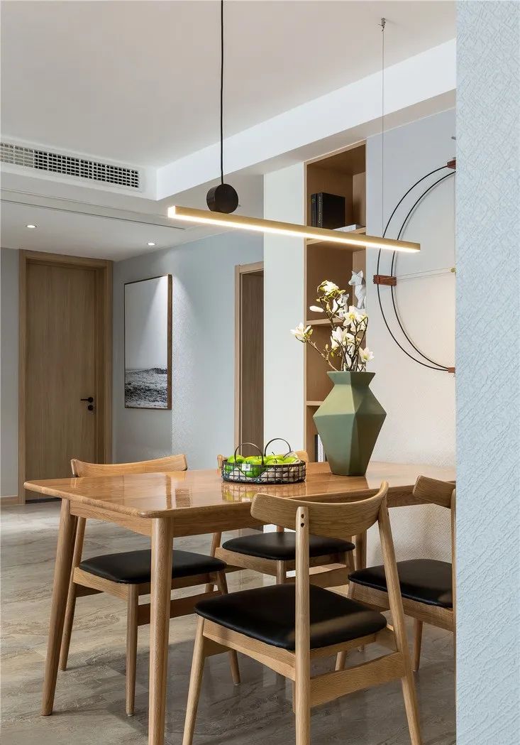 客餐厅之间设计师也是选用原木做链接,将两个空间联系起来。