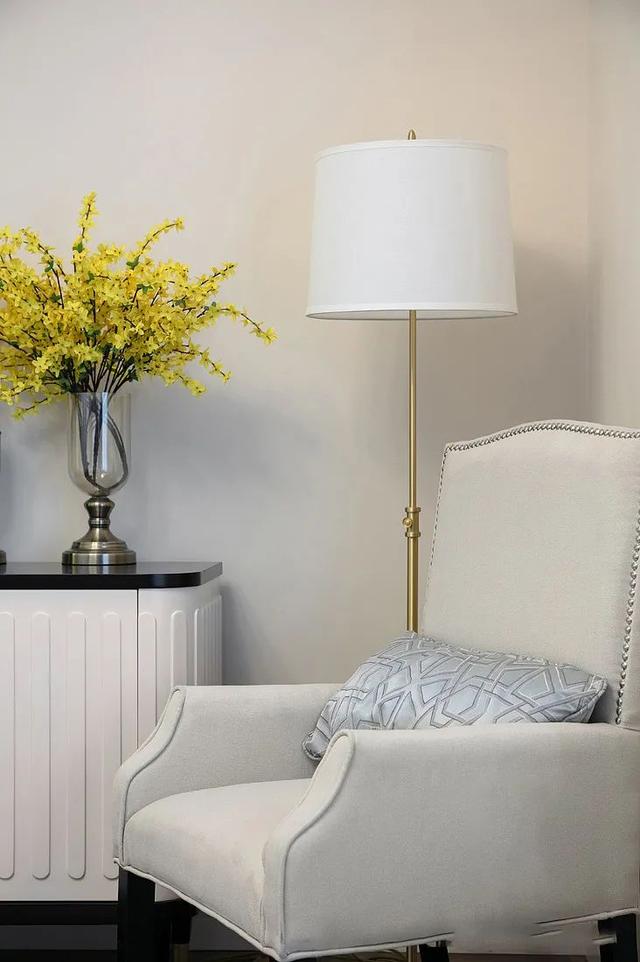 ▲床尾布置斗柜与休闲沙发椅,一张金属杆的落地灯,也带来了一个安静舒适的休息阅读角落。