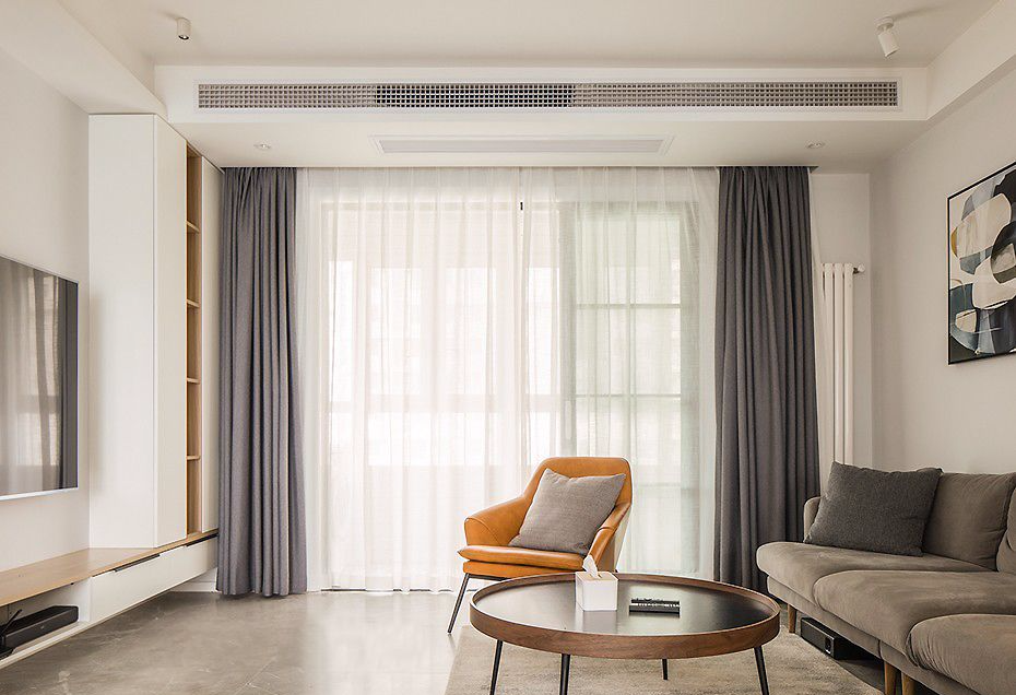 L型组合电视柜设计,带着浓厚的“实用主义”。底部悬空便于清洁卫生,也让空间更显轻盈和通透。