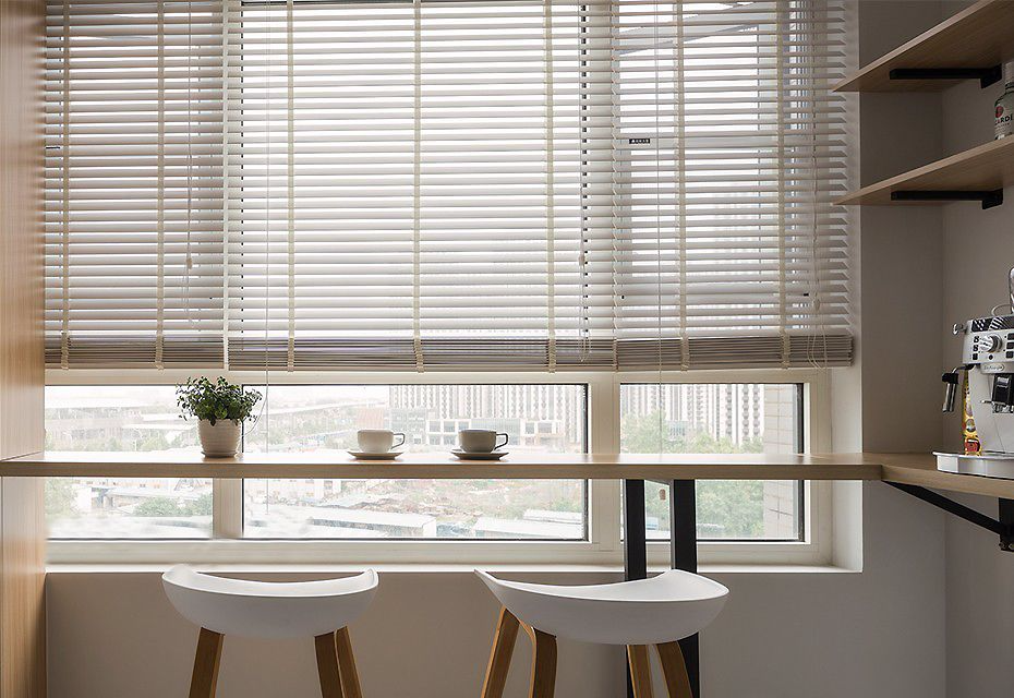 温暖的阳光透过白色百叶帘穿洒进来,安静又惬意。