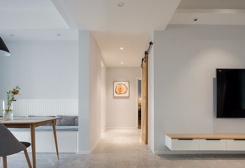 客餐厅之间由过道自然分隔开来,尽头处的装饰挂画在灯光的氛围烘托下,简约又有格调。