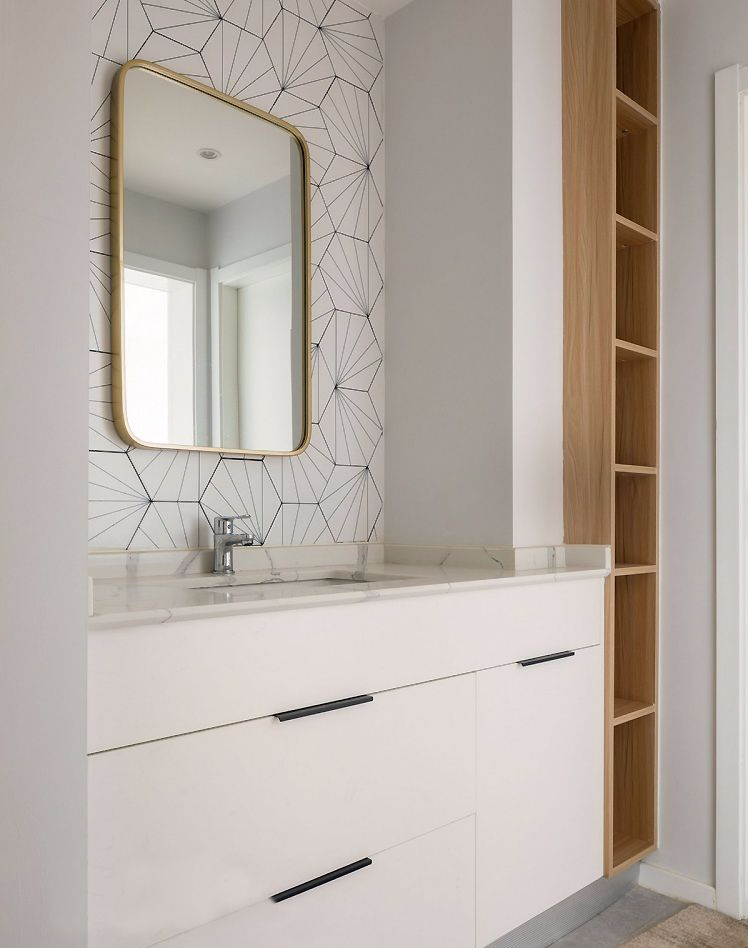 次卫延续干湿分离的设计,墙面铺贴六边形花砖,金边镜子的选用增添一份精致感。