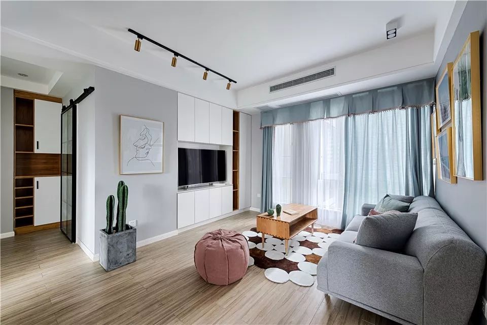 2、射灯+灯带,灯带可以考虑放在沙发背景墙、电视背景墙,中间选择射灯。