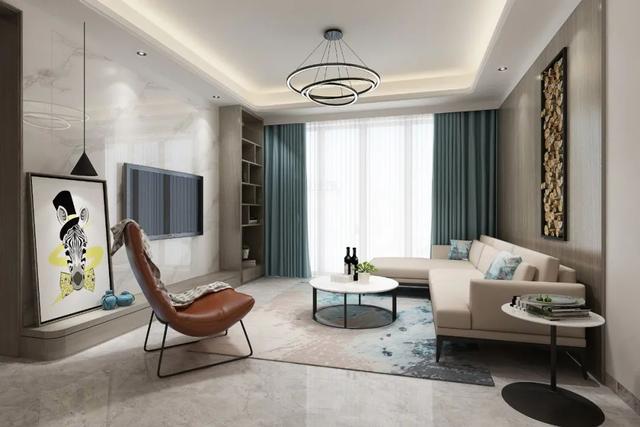 沙发墙作为靠放沙发的一面墙,选择木饰面材质作为沙发靠背,质感温馨自然,并且也比较耐磨耐脏,并且还可以提升客厅的简约质感,比较符合现代简约风的客厅装修。