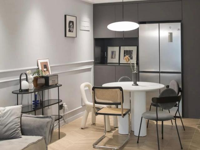 在软装部分,可以局部增加一些黑色系的小家具,比如茶几、餐椅、柜子等等。