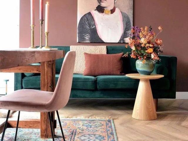 将赤陶色用在硬装上,再搭配高饱和度的家具,分分钟艺术画廊的即视感,非常具有复古韵味。