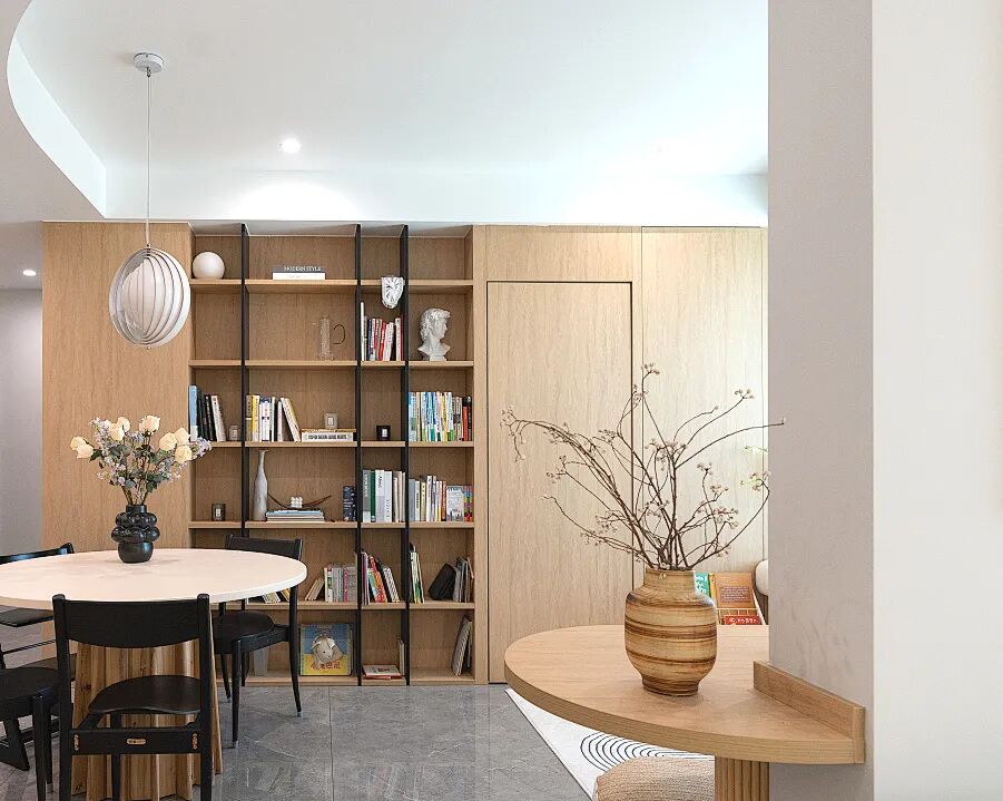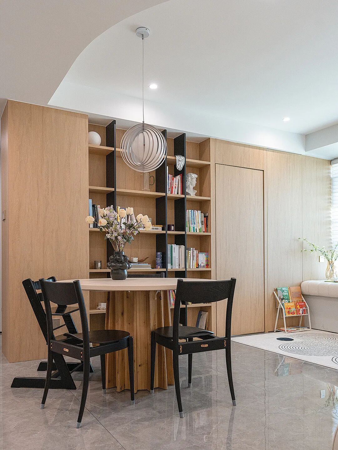 餐厅与开放式书房相连,空间相对独立,又能维系亲密互动的关系。
