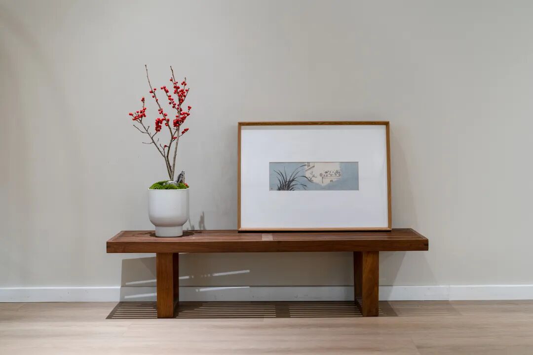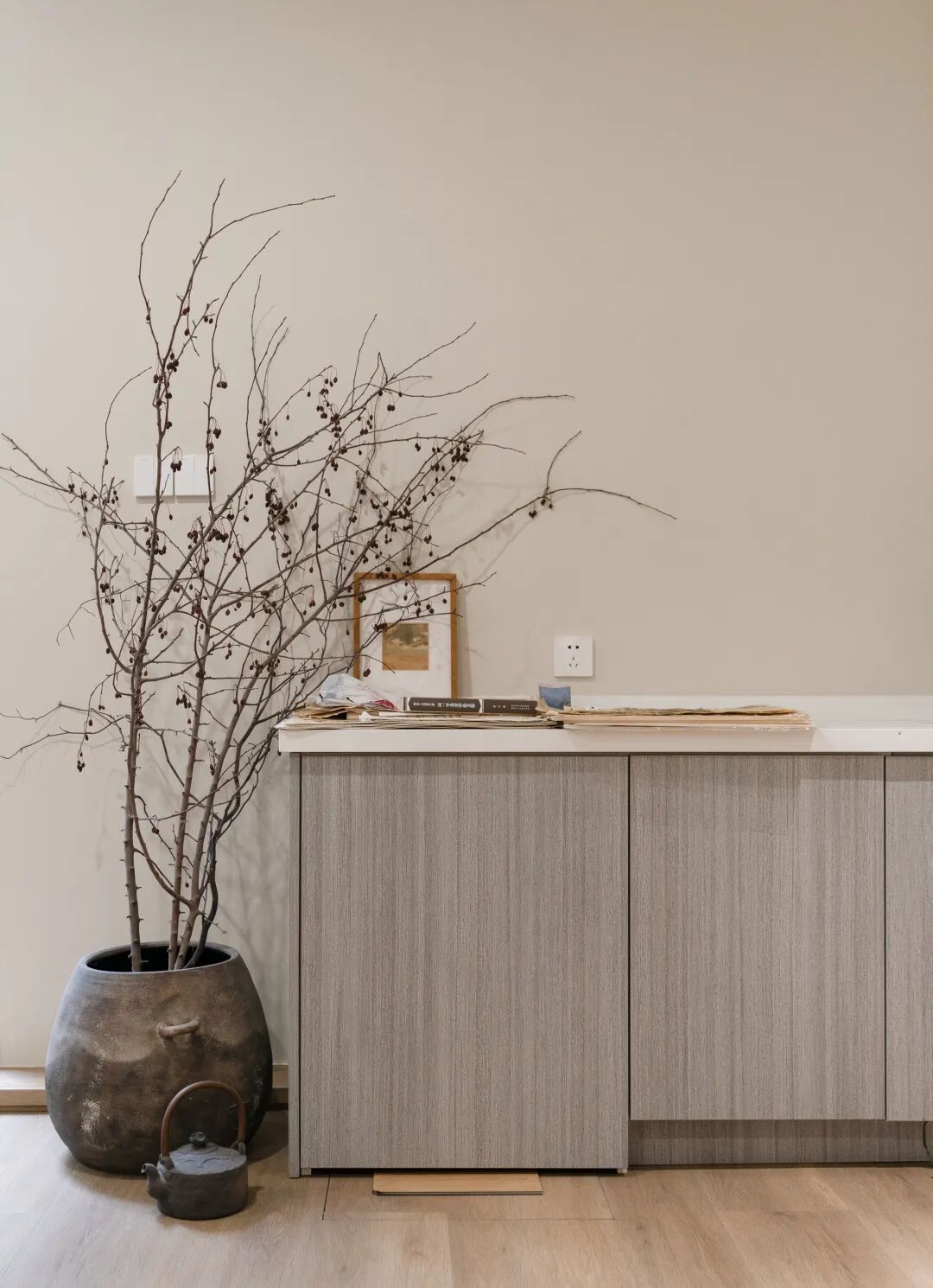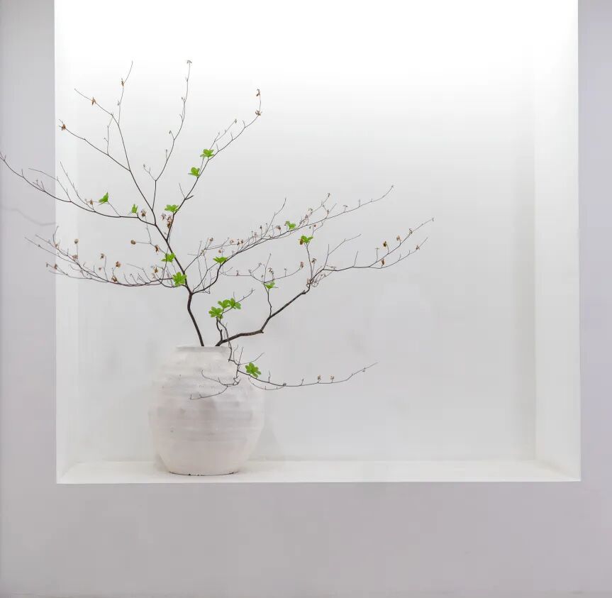 巧妙利用古木、枯树枝、陶罐等来营造一种“旧物感”,呈现在自然岁月刻蚀下特有的斑驳感。不采用任何抢眼的色调,所有的一切都呈现出沉寂、幽静、禅意;偶尔的绿植点缀就如寂寥旷野中对生的希望。