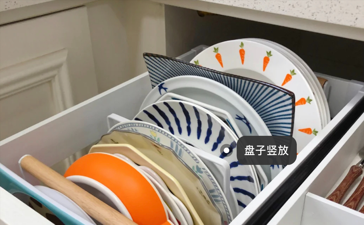 这种体验,是很不人性化的。相比之下,“抽屉式”的地柜,将餐具竖着摆放显然更方便。